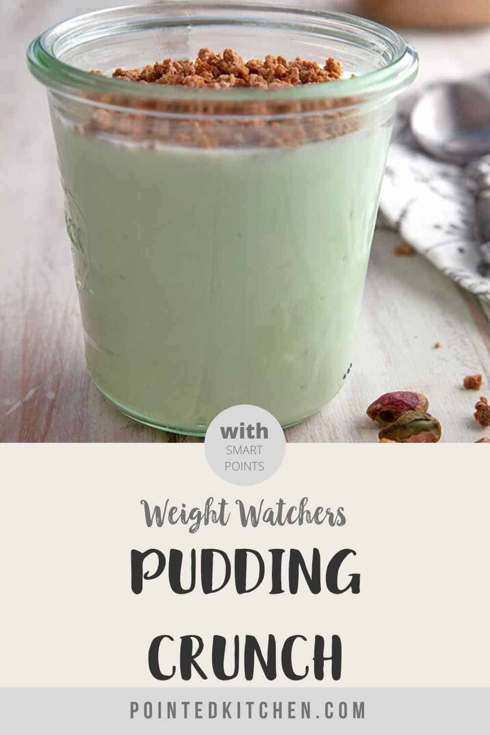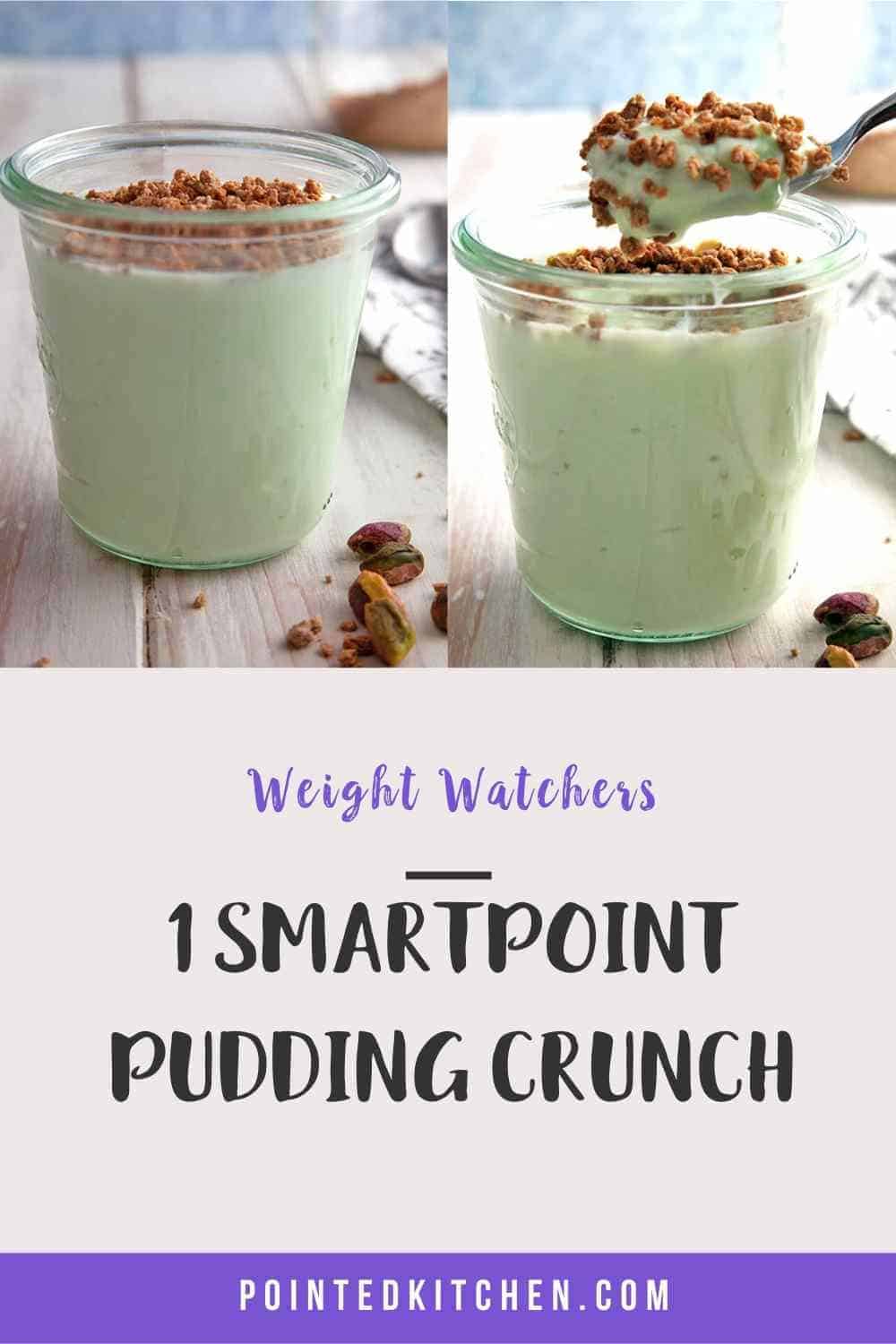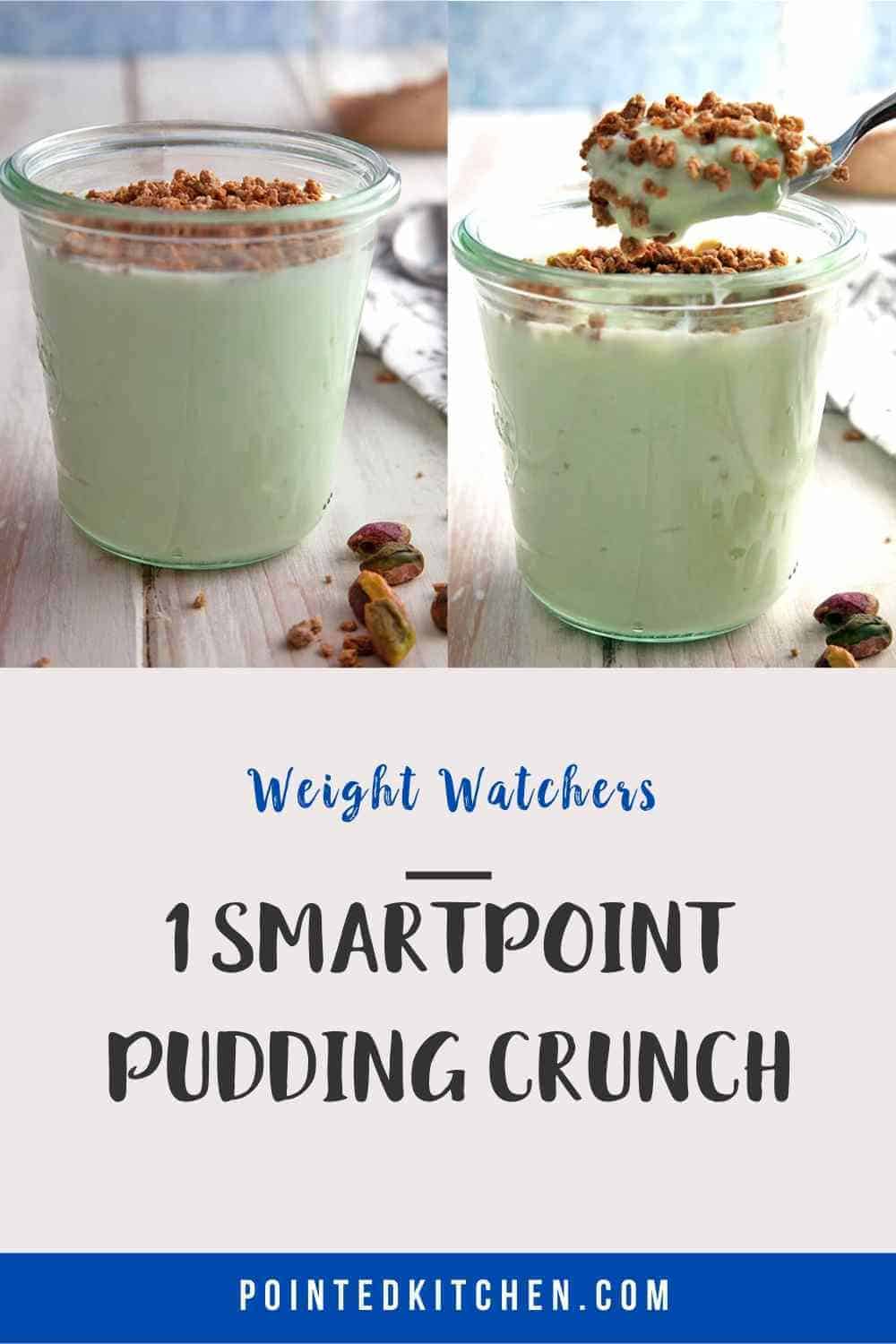 Even without the crunchy topping, this pistachio pudding is really good! But, I love the addition of a bit of 'crunch' which elevates the pudding from tasty to a super tasty low Smart Point dessert!
